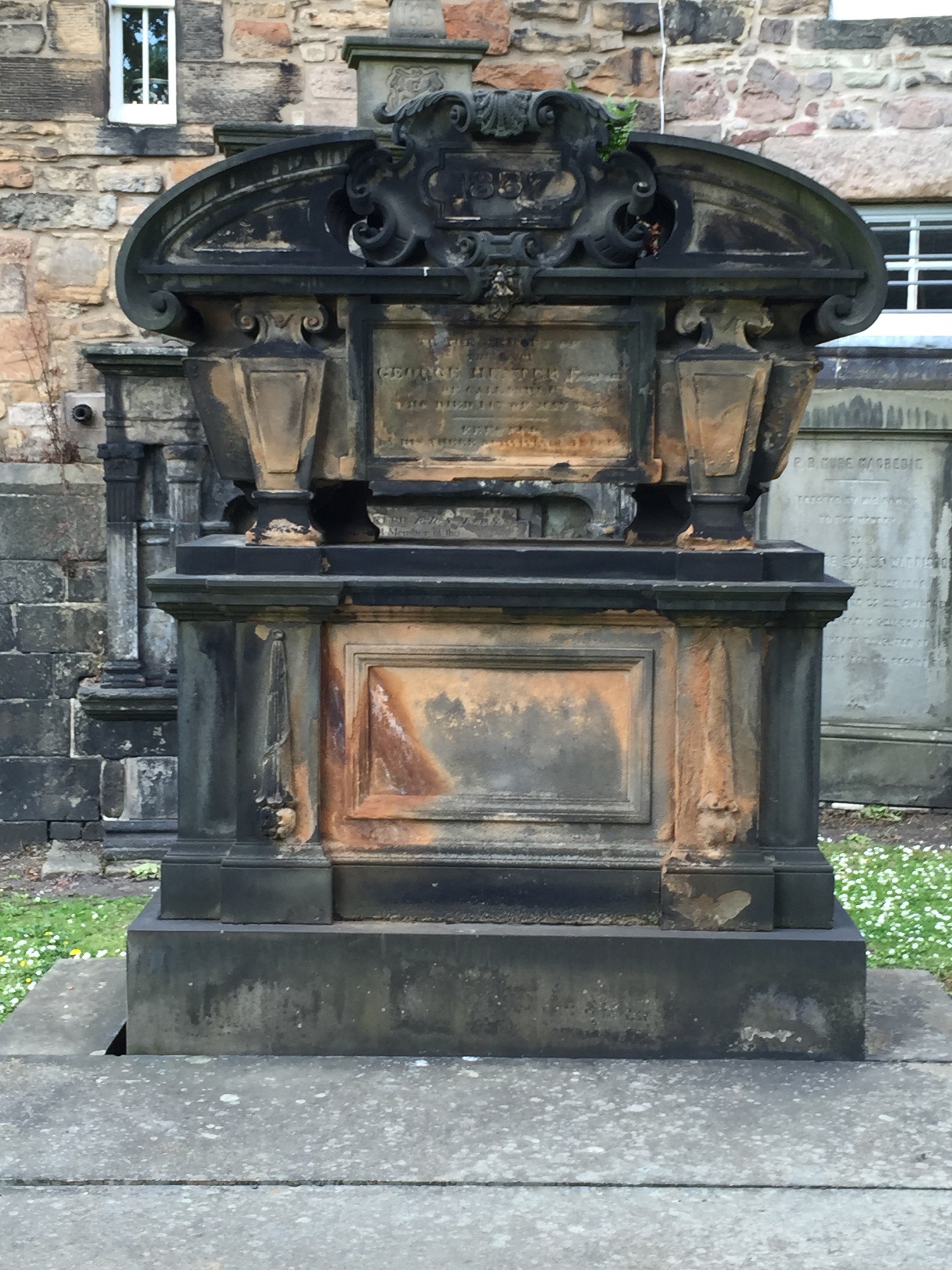 Yesterday I was crossing the road in front of the National Museum for Scotland in Edinburgh and I noticed the entry to a church yard it looked inviting the sun was shining and I decided to have a look, it was Greyfriard church. Within minutes I found myself walking on green grass where a few students were lying down. On it were doted a few graves quite ancient ones,  most of them at least a century ago. And we’re they were cool looking !!! Ornate … Theatrical …