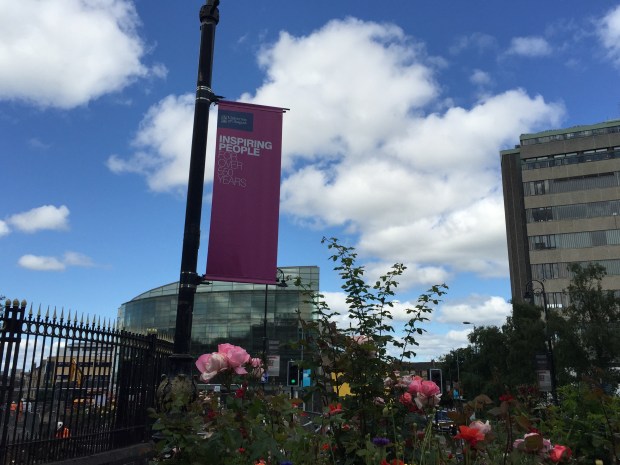I had a meeting at the Hunterian Art Gallery this morning and as it finished early I could not help myself,  I crossed the road and walked in the University of Glasgow Campus. The old one … Well not the original one but the one built in th 1880 ‘s when Glasgow was the second city of the Empire. It’s grand … Powerful … Harry Potter like ! You feel when you study there that something special should happen to you upon graduation … And that is why all my family holds degrees from that University … Nothing to do with the fact it’s just around the corner ! Well not really !