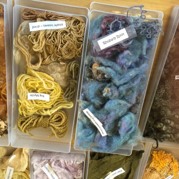 Did you know that there are over 40 different kinds of lichens that were used by our elders to dye wool? That Urine was used to treat wool before it was dyed but also to extract the dye from the lichen? That Rhubarb root give the nicest possible pink ? that the sunlight would turn that pink fabric purple and eventually blue? That you need to treat the wool with a “Mordant” to make it keep the colour once applied? That a piece of wool dyed yellow with some twigs of mint will turn green if you add a bit of iron as a Modifier to the dye bath? That you could use an old nail left in water in an old jar as a Modifier?
