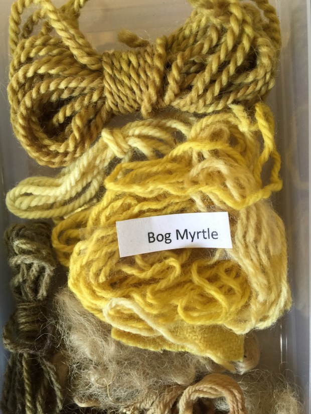 It was very exciting to attend the class for once and not running it, turning up “hands in the pockets” taking in the information, asking the questions, meeting new people, discovering a new subject. All this was very exciting but really the fascinating thing was the title of the class…. “Colours of Scotland”  this is all about what makes Scotland so colourful, what you can find in nature to recreate this beauty. What gives the Tweed the colours it is, how to dye this very natural wool, how use nature to recreate the colours of the landscape.