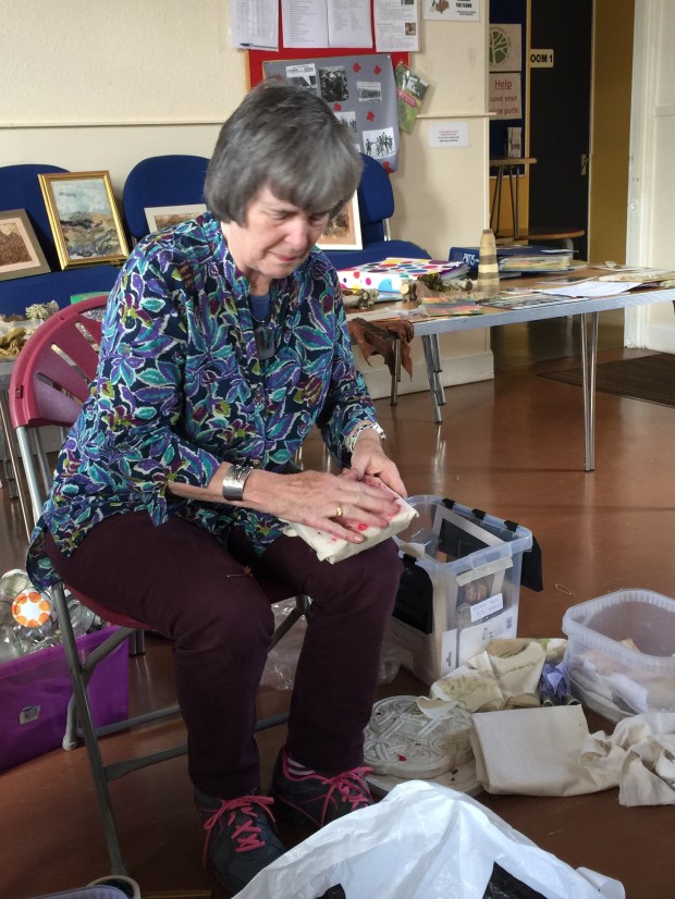 Last week I joined a two days class with The Scottish Feltmakers association, part of their yearly summer school. It was in Dunblane north of Stirling, in a very traditional community centre, great big building with large windows just above the Cathedral. A lovely group of ladies much involved in Feltmaking are running it every year. The course was very exciting and the icing on the cake… they serve afternoon every afternoon. I mean the proper one with home made cakes. complete bliss !!!