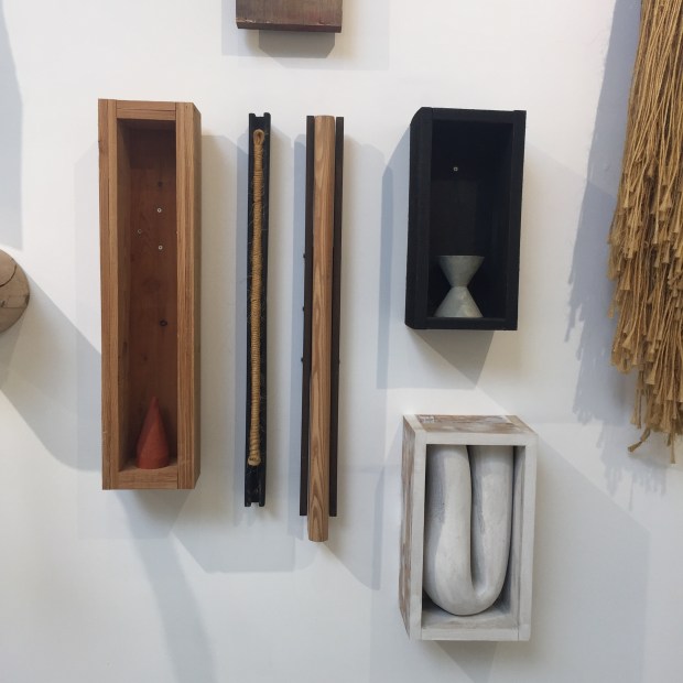 I am not familiar with the work of Doug and I did not get the whole meaning of “flowering pasture” and so … on but I was left marvelled with the beautiful master craftsmanship with which Doug handled the wood, metal, leather and twine. His work is reminiscent of that of the great craftsmen of yesterday. I can imagine the wood been caressed and shaped by old tools on a workbench that smell of fresh herb and the sound of an old radio in the distant background. On the floor some fine grain sandpaper discarded mixed with wood shaving.