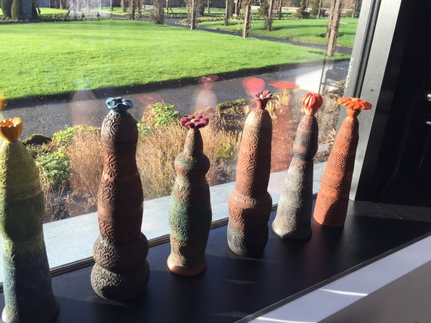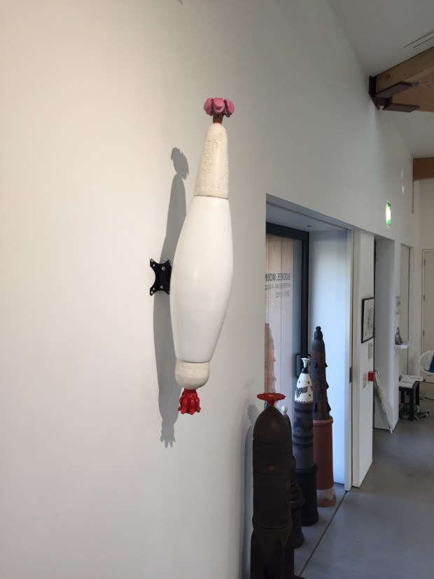 The bombs are only a part of the exhibition, it is called “Bodies, mountains and bombs” and is a retrospective of Peter Bevan’s work. During the month of February 2016 Peter will be running a class in “low relief surface decoration tiles” in Glasgow, you can get the details and booking details here
